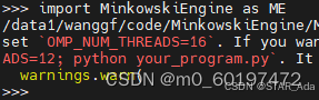 注:在输入第二行命令,即import MinkowskiEngine时,可能会出现警告(线程问题,可以忽略)