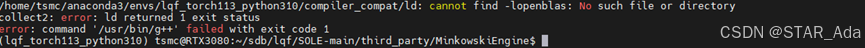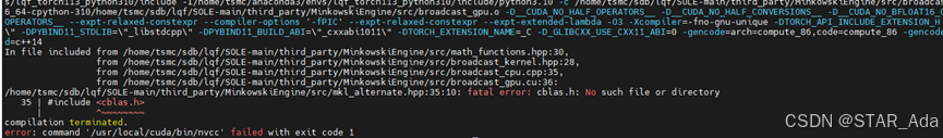 查看gcc/g++对应的版本,如果过高,建议切换(之前在gcc版本为11时尝试安装MinkowskiEngine,一直出现下列问题,尝试多种方法解决无果,如果有解决的方法可以告诉我,感谢!!!)