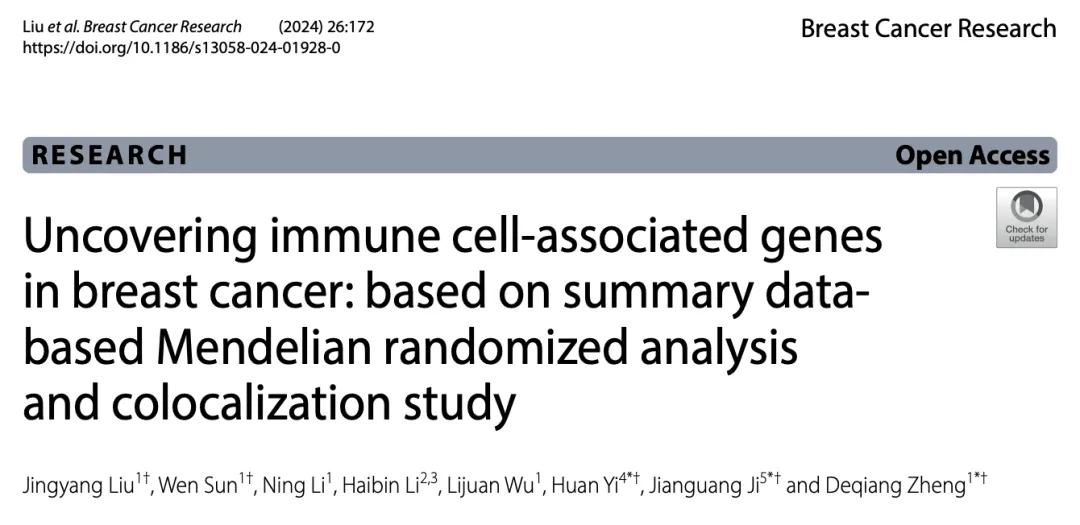 题目:乳腺癌中免疫细胞相关基因的挖掘:基于汇总数据的孟德尔随机化分析与共定位研究