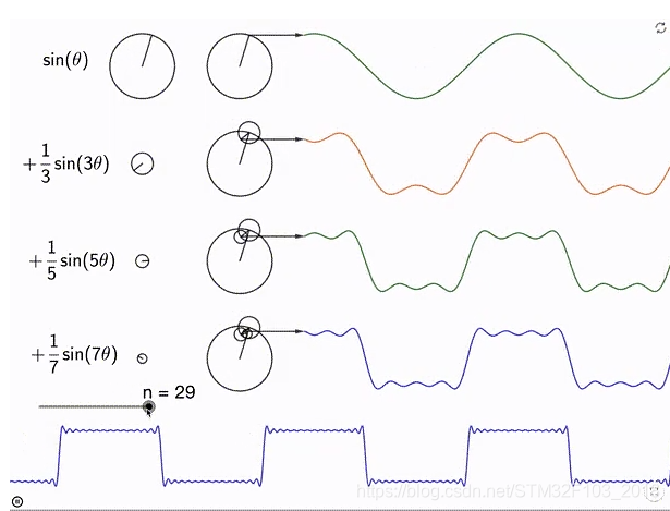 实际运算n不可能是无限大的,都是取有限的n来计算,n越大,合成的波形也越来越接近方波