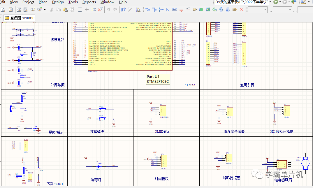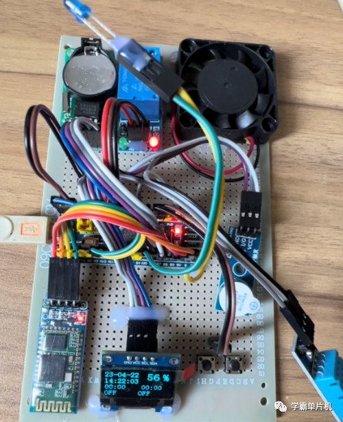 功能介绍:采用stm32单片机作为主控CPU,采用DHT11传感器采集温湿度,采用ds1302时间模块来校准时间并且闹钟提醒,到达时间蜂鸣器进行滴滴提醒,采用继电器驱动风扇进行排气,OLED显示相关数据,蓝牙HC-06模块将数据上传到手机APP,并且设有两个按键,可以手动打开消毒灯和排气风扇,程序有中文注释,新手容易看懂,文末有资料分享: