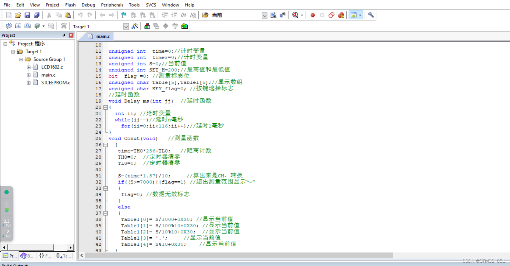 功能介绍:采用51单片机作为主控CPU,LCD1602显示水位,SRF04超声波采集水位高度,可以通过按键设置水位高度,超过水位上限值蜂鸣器进行报警,并且通过串口可以将数据上发到电脑串口助手,文末有资料分享: