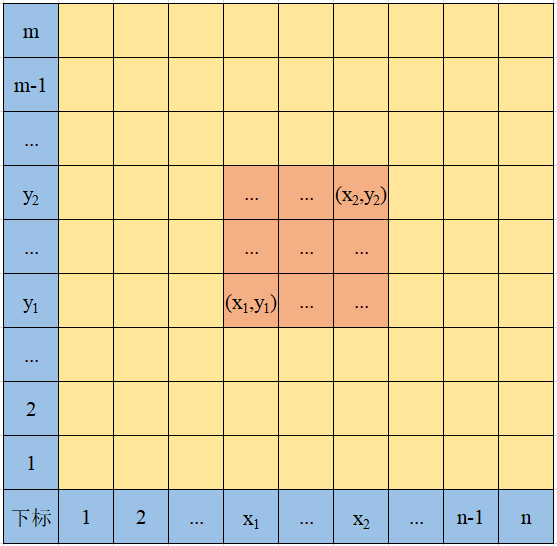有一个二维数组a[1][1] a[n][m]a[1][1]~a[n][m]a[1][1] a[n][m],询问矩阵左下角a[x1][y1]a[x_1][y_1]a[x1][y1]到右上角a[x2][y2]a[x_2][y_2]a[x2][y2]的和。
