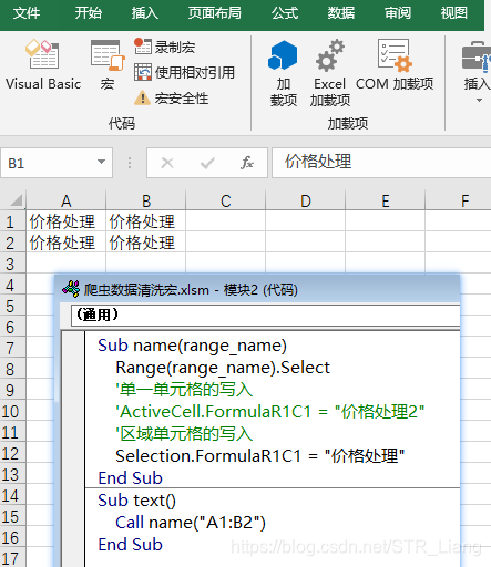 'ActiveCell.FormulaR1C1 = "价格处理2"
