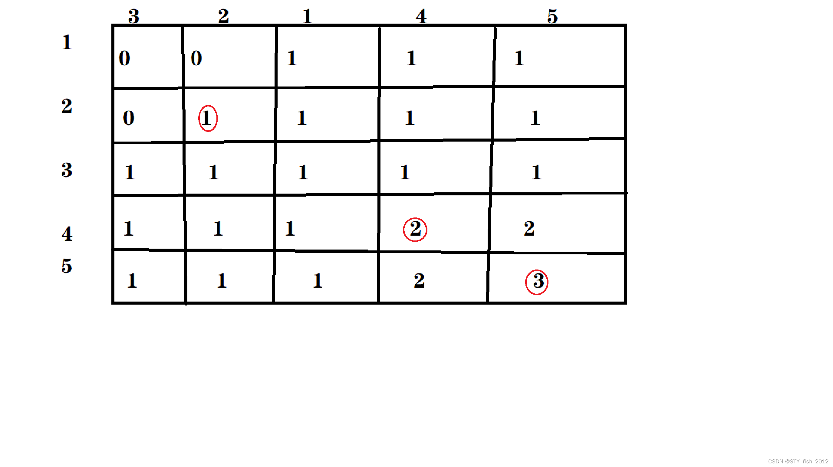 所以可以推出:如果行号的值等于列号,那么这个值就要做改变(在前面的基础上加一)