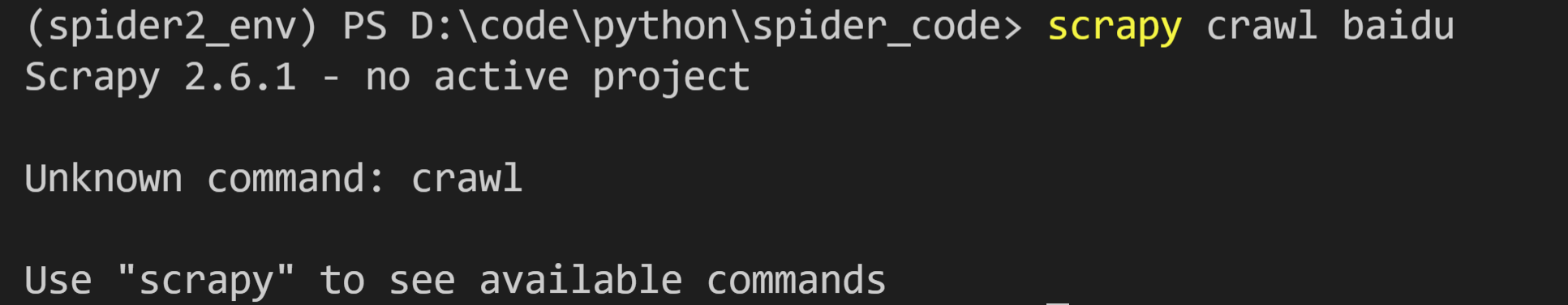 scrapy runspider spider_file.py注意:这里是爬虫文件的名字,要指定到spider文件夹