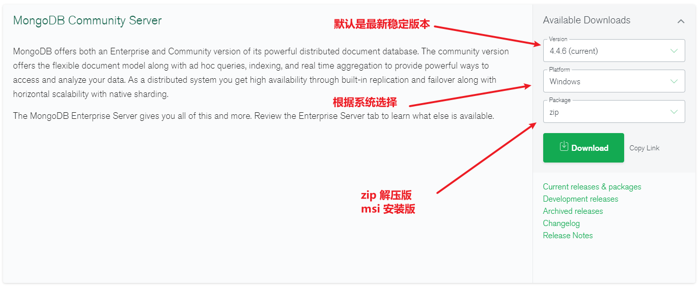 社区版下载网址:https://www.mongodb.com/try/download/community