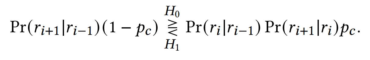 给定起始点,起始时间,结束点和结束时间,使用表示两个点之间的轨迹,其中表示路段,。由于轨迹的选择跟给定时间的弱依赖性,轨迹的后验概率可以被分解为两部分:
