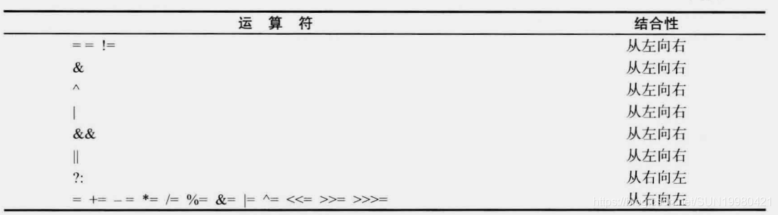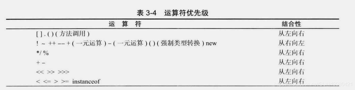 表3-4给出了运算符的优先级。如果不使用圆括号,就按照给出的运算符优先级次序进行计算。同一个级别的运算符按照从左到右的次序进行计算(除了表中给出的右结合运算符外。)例如,由于&&的优先级比||的优先级高,所以表达式