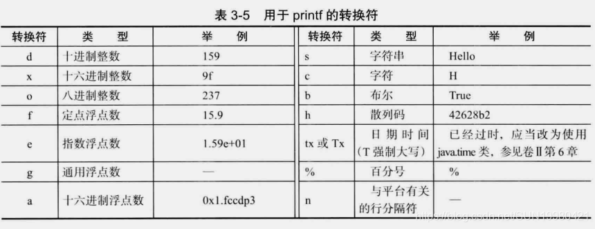 每个以%字符开始的格式说明符都用相应的参数替换。格式说明符尾部的转换符将指示被格式化的数值类型:f表示浮点数,s表示字符串,d表示十进制整数。表3-5列出了所有的转换符。