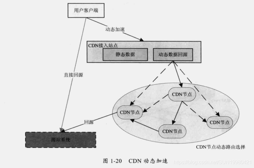 CDN的动态加速技术也是当前比较流行的一种优化技术,它的技术原理就是在CDN的DNS解析中通过动态的链路探测来寻找回源最好的一条路径,然后通过DNS的调度将所有请求调度到选定的这条路径上回源,从而加速用户访问的效率。
