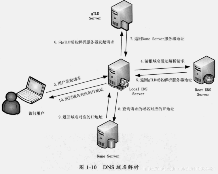 DNS解析将会有10个步骤,这个过程大体描述如下。
