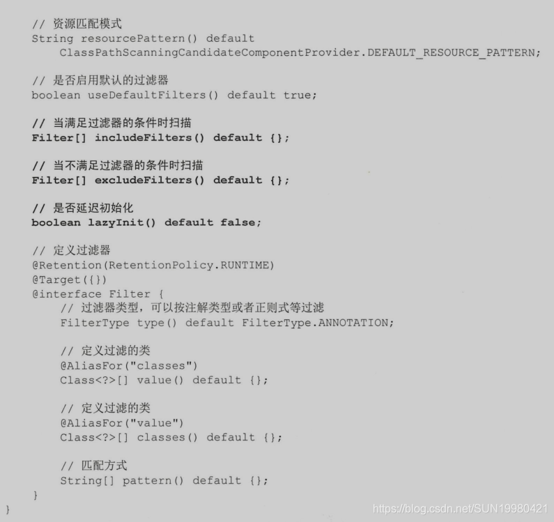 ComponentScan中还有一个配置项lazyInit,只可以配置Boolean值,且默认值为false,也就是默认不进行延迟初始化,因此在默认情况下会对Bean进行实例化和依赖注入对应的属性值。