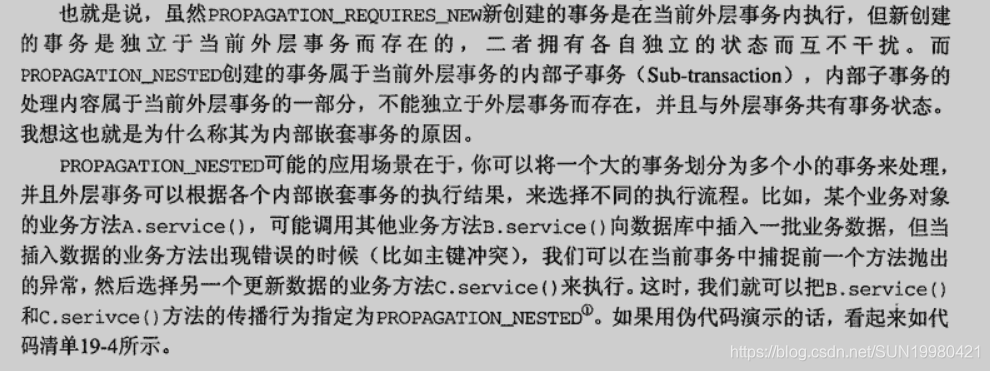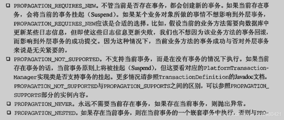 - 如果相应的PlatformTransactionManager支持Savepoint,可以通过TransactionStatus在当前事务中创建内嵌事务。