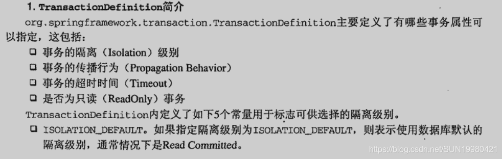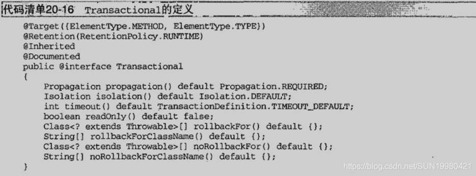 Spring定义了org.springframework.transaction.annotation.Transactional用于标注业务方法所对应的事务元数据信息。