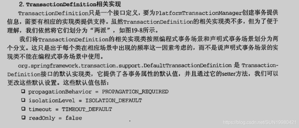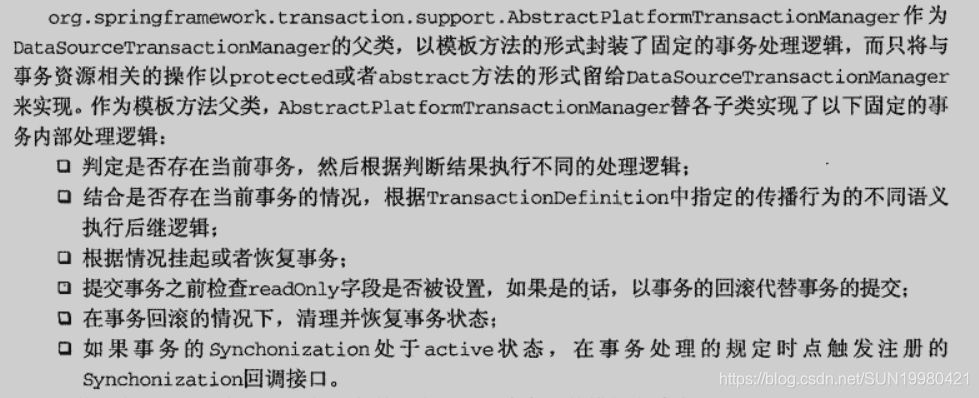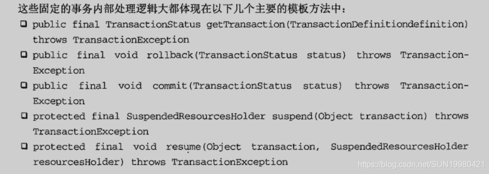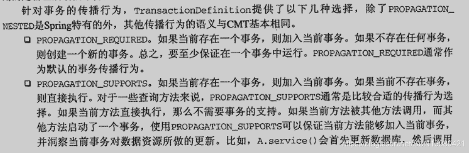 - 当业务层使用事务的抽象API进行事务界定的时候,不需要关心事务将要加诸于上的事务资源是什么,对不同的事务资源的管理将由相应的框架实现类来操心。