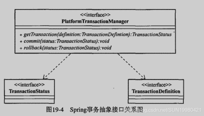 Spring的事务抽象包括3个主要接口,即PlatformTransactionManager、TransactionDefinition以及TransactionStatus。