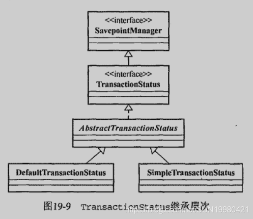 org.springframework.transcaction.TransactionStatus接口定义表示整个事务处理过程中的事务状态。