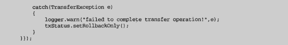 - 通过setRollbackOnly()方法标记当前事务以使其回滚