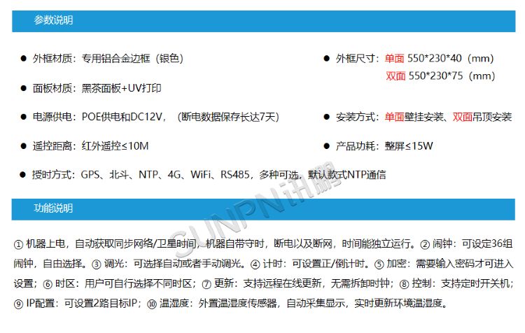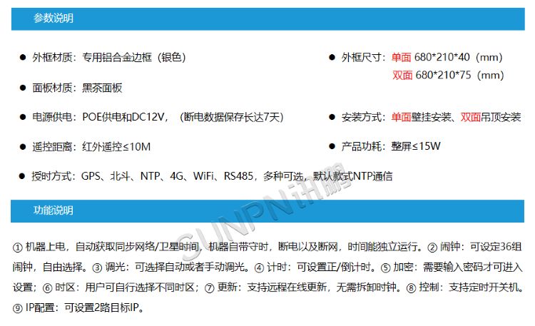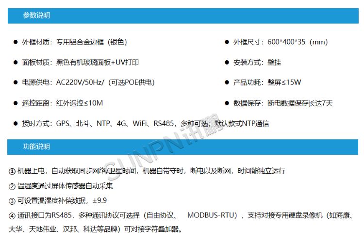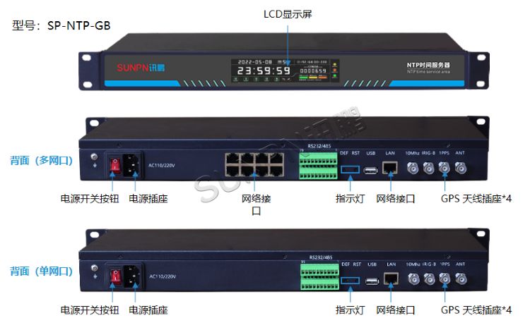 ⑨授时方式:GPS、北斗、NTP、4G、WiFi、RS485,多种可选,默认款式NTP通信