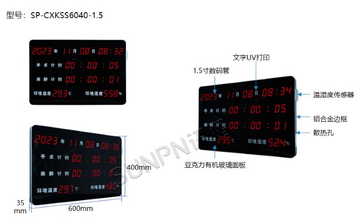 3、 手术室:通常采用单面壁挂的3联时钟,用以记录手术/麻醉/倒计时/正计时,便于医护人员掌握手术进度并协调安排。