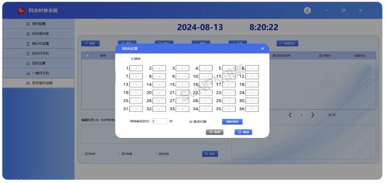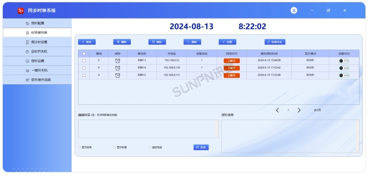 1. 全系统时钟管理:可实时监测所有时钟运行状态,判断设备连接是否正常;支持点对点精准控制,可单独为指定时钟设置闹钟功能。