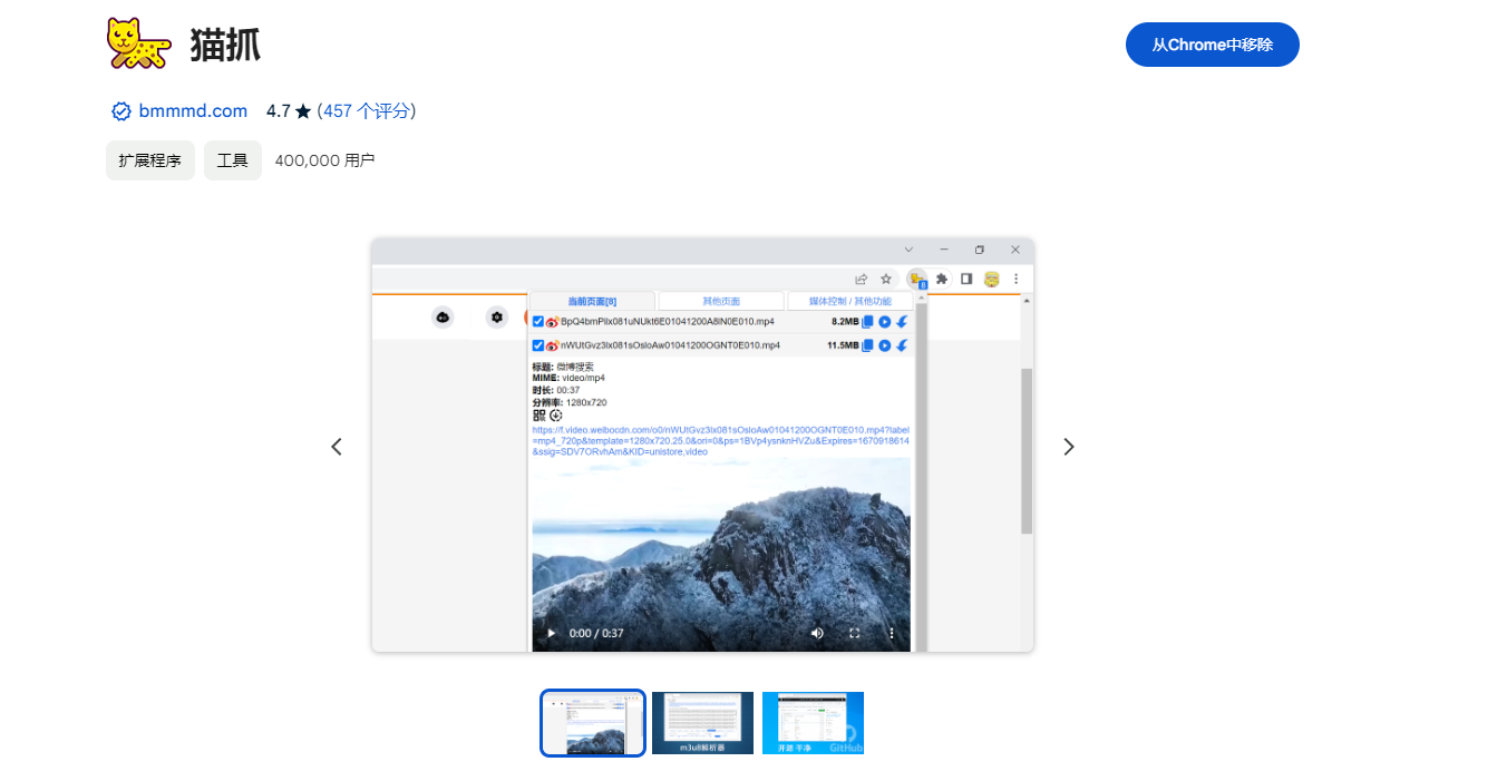 简单易用:猫抓插件的安装和使用非常简单,只需在浏览器扩展商店搜索“猫抓”,点击安装即可。