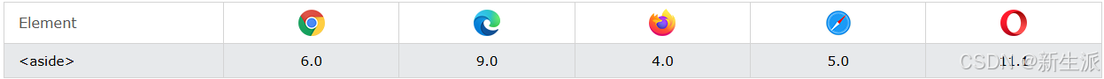 表中的数字指定了完全支持该元素的第一个浏览器版本。