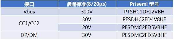 针对不同的接口类型,Prisemi研发了多款不同浪涌能力的产品。