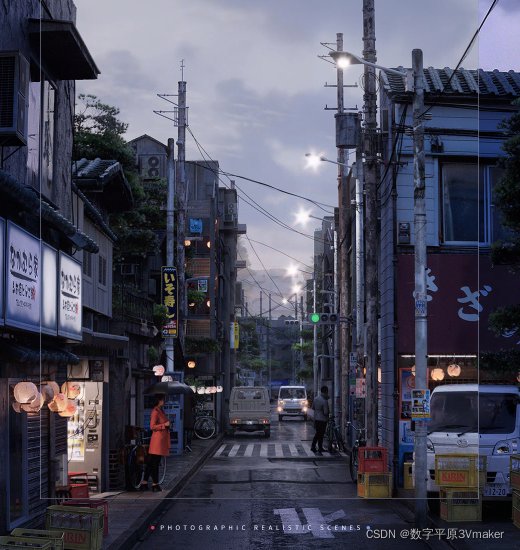 接下来欣赏有数字平原陈工带来的日本街巷的完整渲染美图
