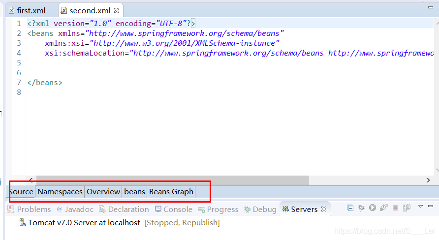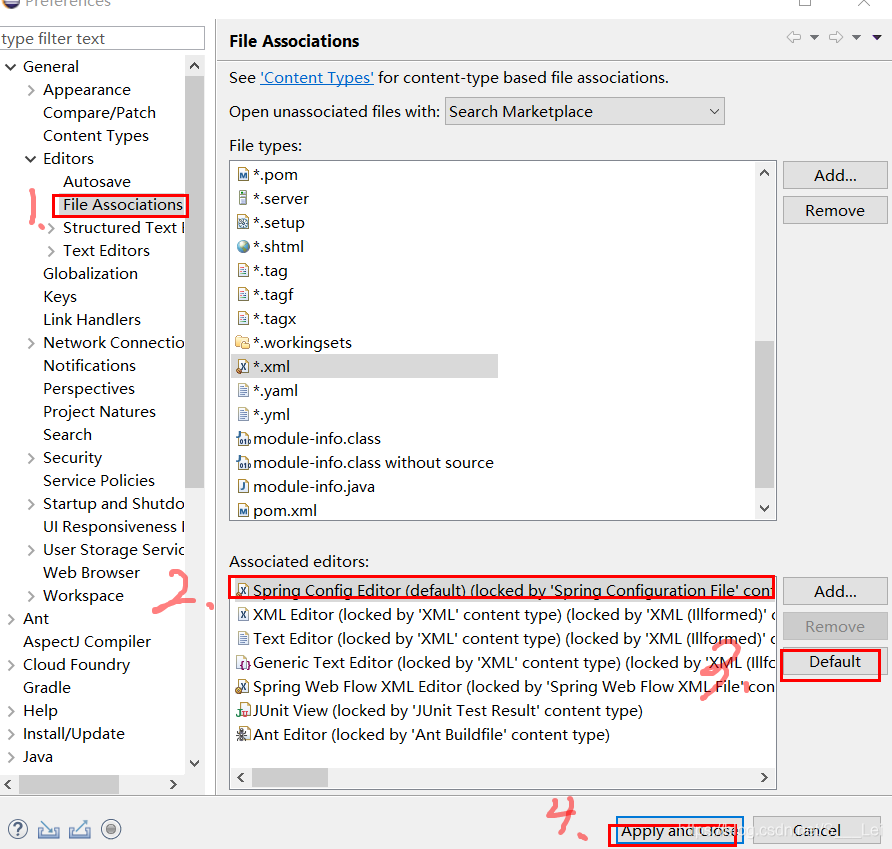 解决方案:Window → Preferences → General → Eidtors → File Associations → *.xml (没有*.xml的话,点击右侧Add按钮创建一个这样的文件即可) → 选中Spring Config Editor → 点击Default → 完成后重新创建Spring Bean Configuration File ,即可以看到Namespaces