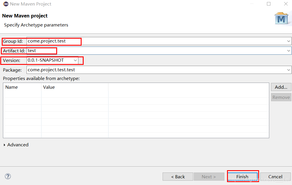 输入一下信息,点击Finish 一个Maven Project 便创建完毕