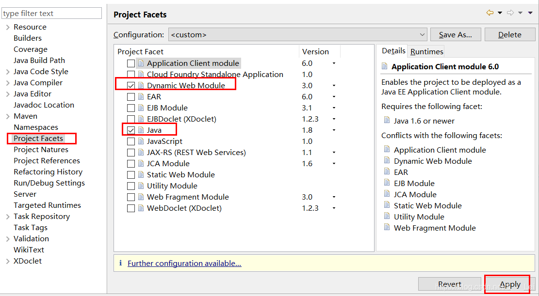 解决方案:选中项目,点击右键 → Properties → Project Facets→ 勾选上Dynamic Web Module和Java → Apply,问题解决