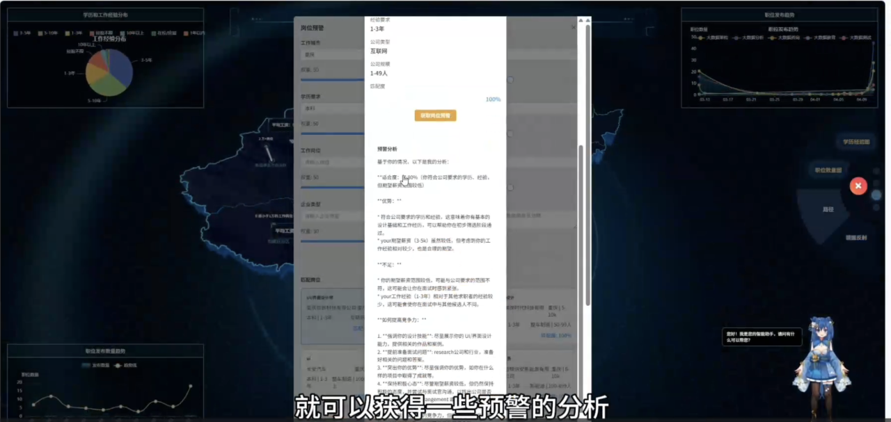 高校毕业生群体:作为年均规模超1200万的刚性就业需求群体,高校毕业生普遍缺乏就业市场认知和职业规划能力。针对该群体,系统提供行业前景分析、技能匹配评估和入职前景预测等服务,帮助其实现从校园到职场的平稳过渡。