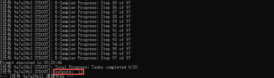 可以在软件后台查看当前的执行进度,程序处理完毕会输出信息outputs,生成的视频默认保存在项目路径的“生成结果”文件夹下,也可以在“输出界面”的右上角点击下载