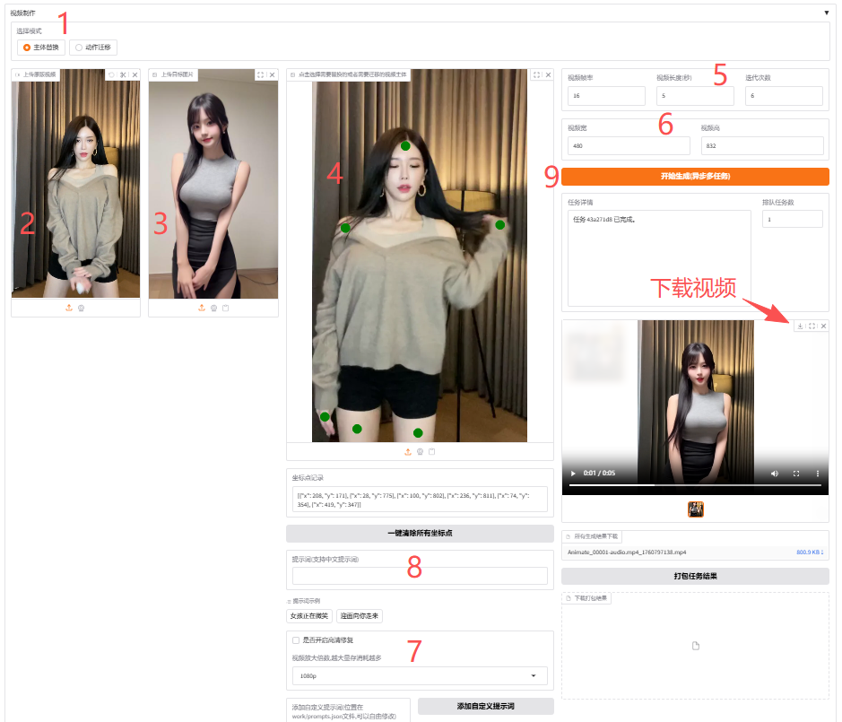 8.以上是图片和视频人物替换的方法,如果只想“替换服装不替换人物”或者“只替换人物不替换服装”,可以在文本框中输入提示词,支持中英文