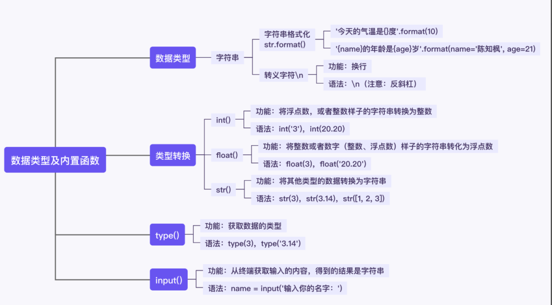 其中字符串的格式化及后面会讲到的 input() 函数都是重点。