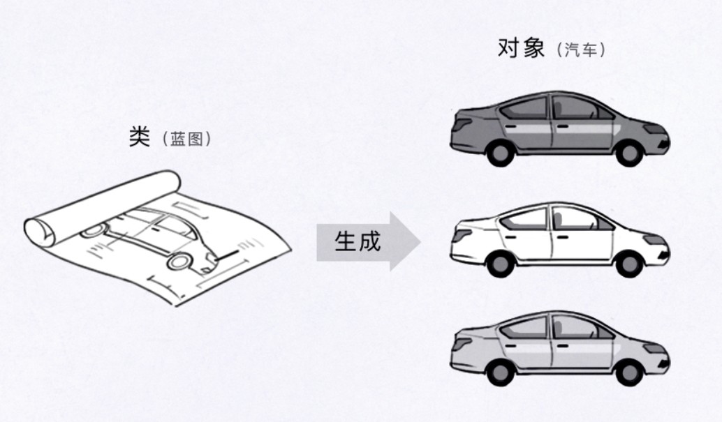 那我们该怎么根据现有的蓝图(类)生产一辆真正的汽车对象呢?