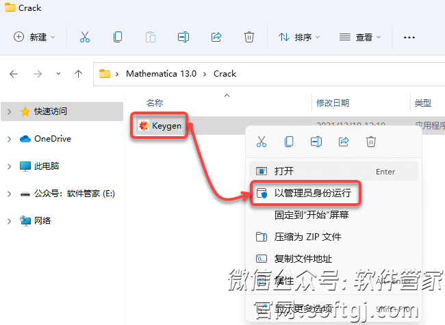 14.鼠标右击【keygen】选择【以管理身份运行】。