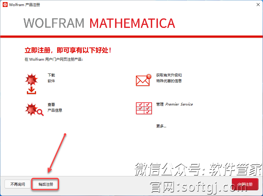 17.点击【稍后注册】。