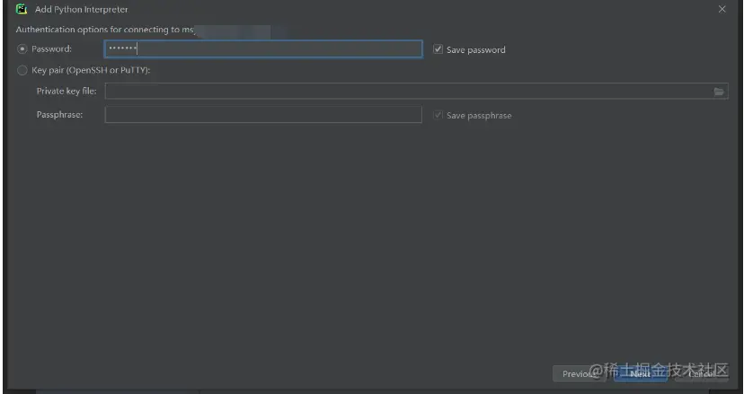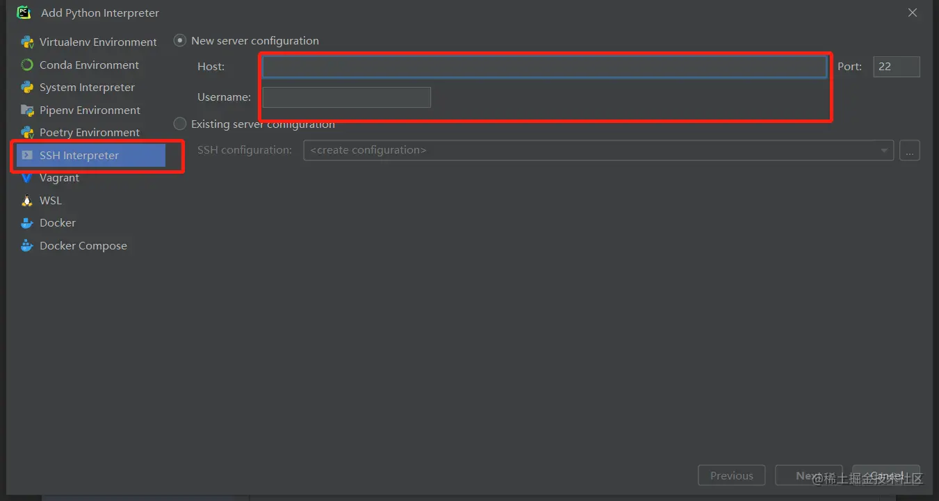 - 使用SSH,输入你的远端服务器地址IP和用户名(如果存在就选下面那个existing***)