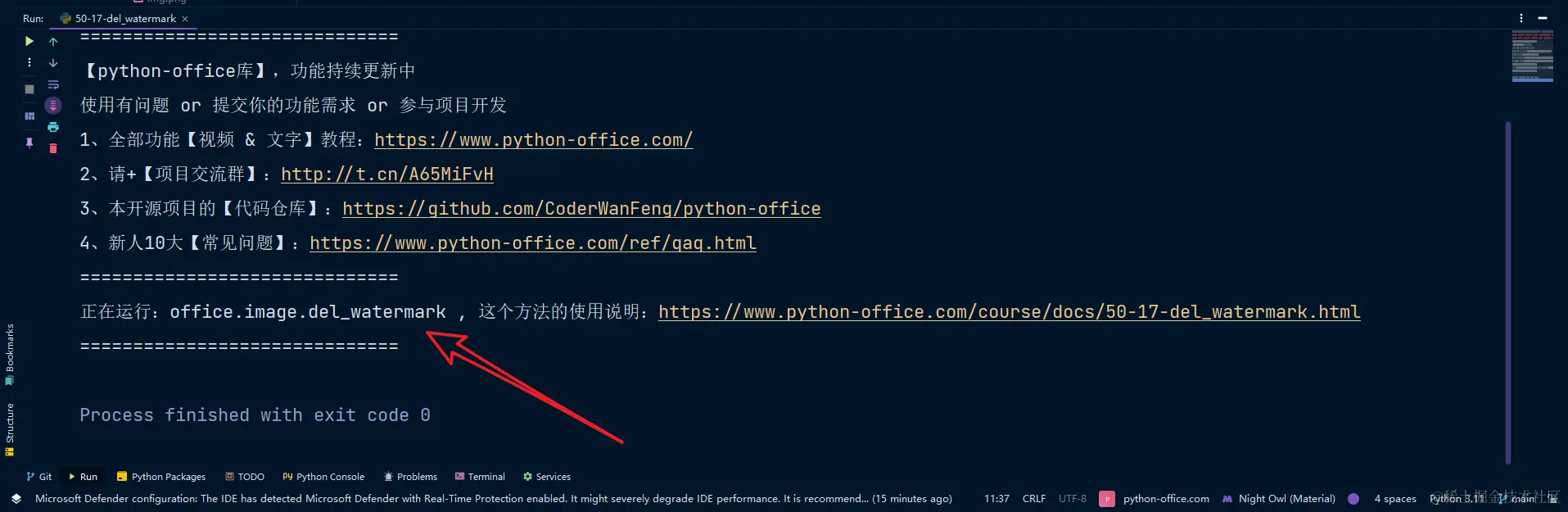 例如运行一段PDF转Word的代码,你会看到下图显示。👇