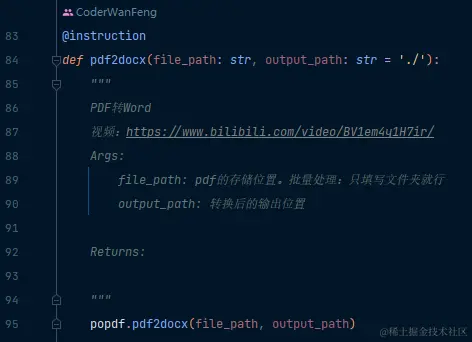 这次为了更好的帮助专业人员使用python-office,特别增加了Type Hints。如下图所示。👇