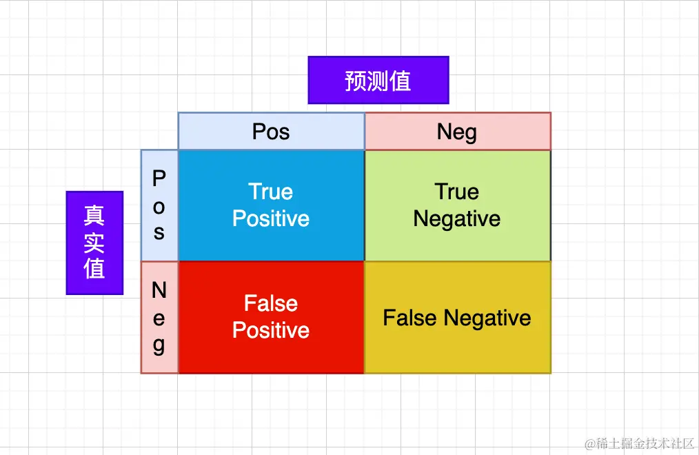 - True Negative(TN):真负类。样本的真实类别是负类,并且模型将其识别为负类。