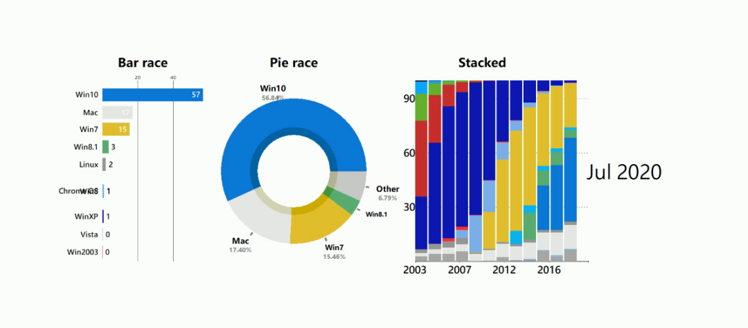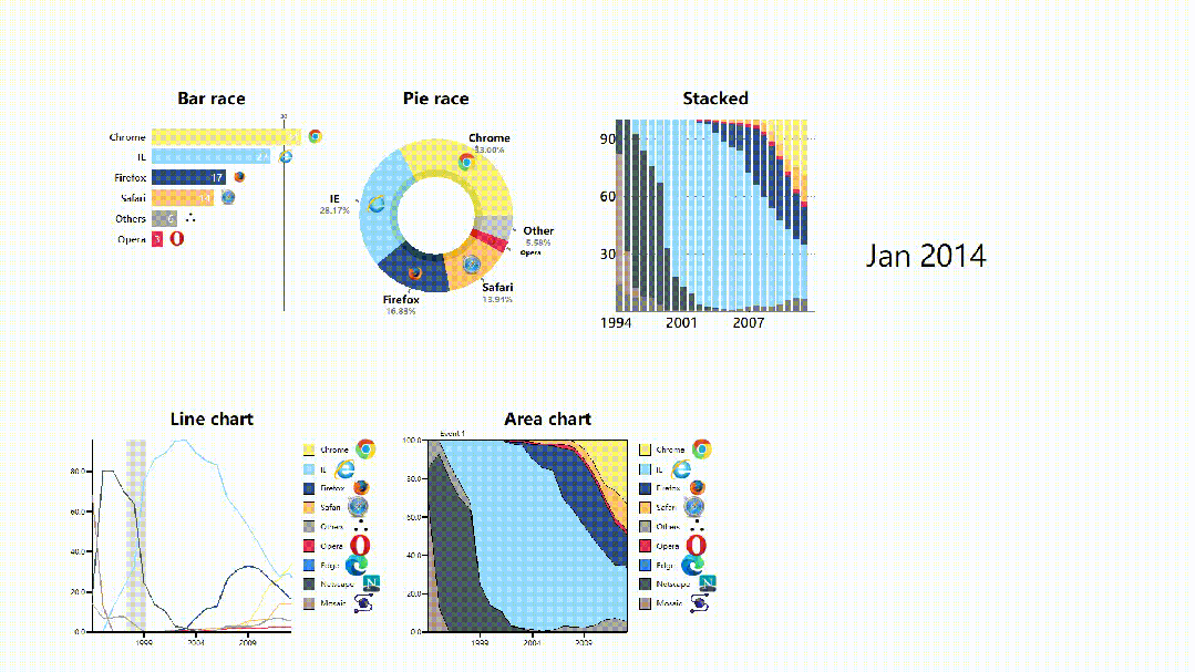 只需几行代码,就可以制作电脑浏览器发展史的动态图表。