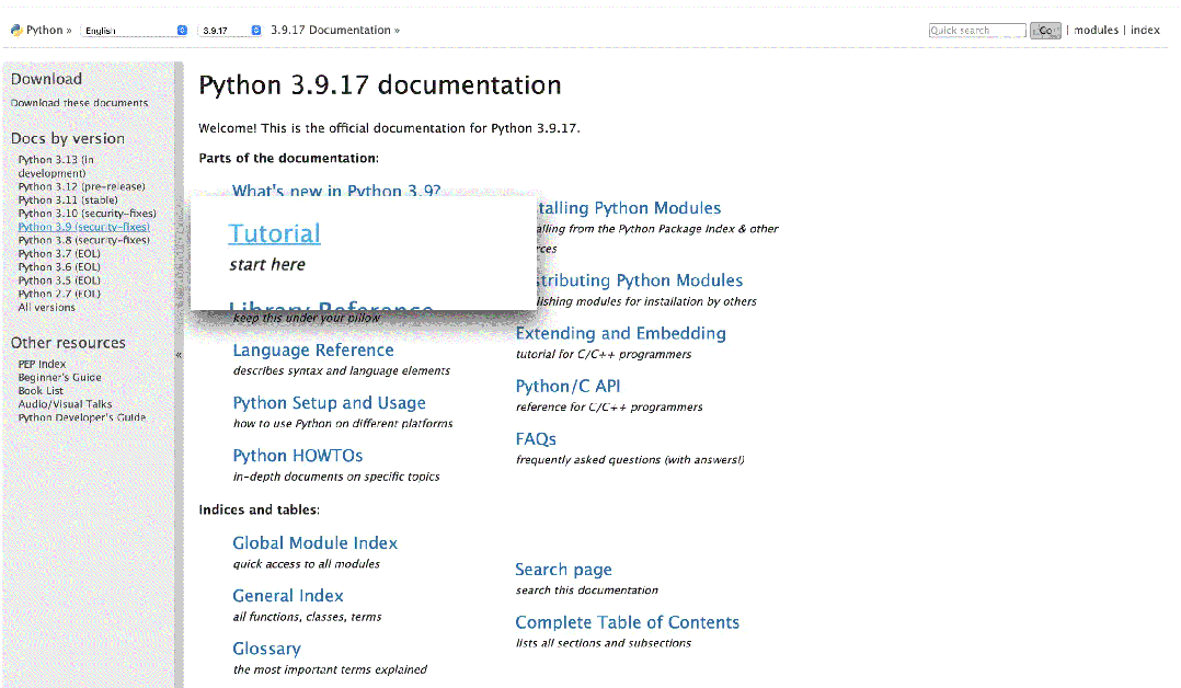 在安装完Anaconda后,你可能会急着点进某度首页上的各种广告页面,然而殊不知,Python官方文档已经提供了最详尽的语法文档。