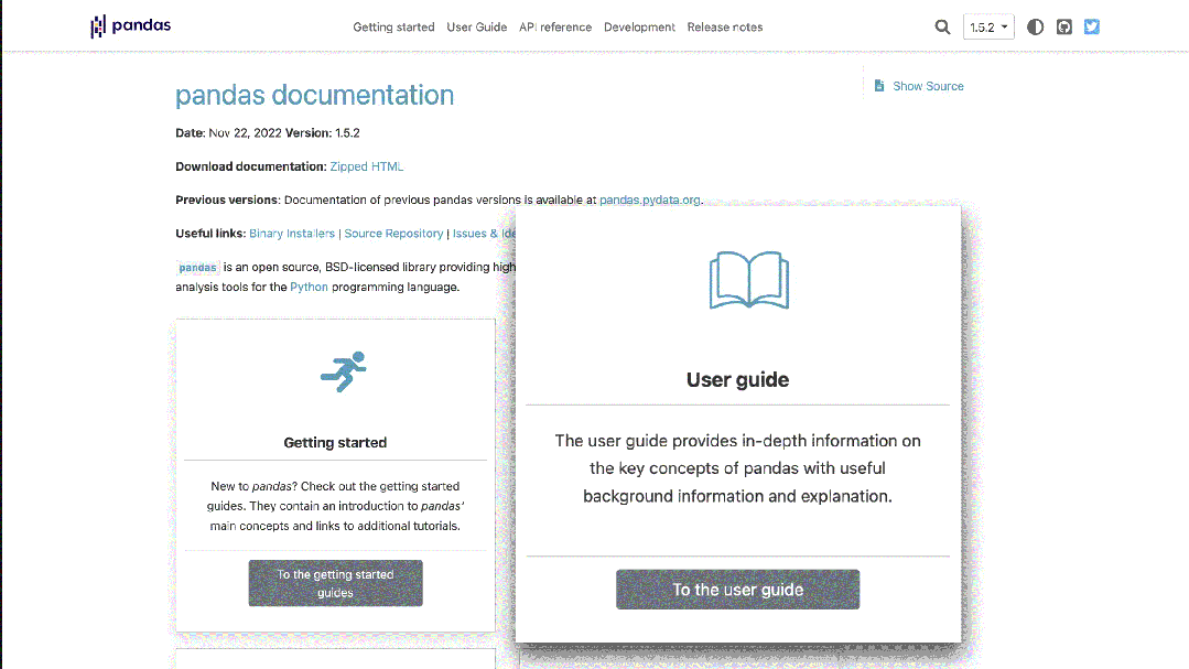 **2、User guide:**用户指南,进一步提供pandas的核心功能及详尽的代码示例,帮助使用者详尽的了解pandas在数据处理方面的使用方法。