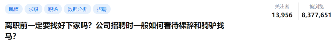 在知乎,关于「公司比较青睐裸辞还是骑驴找马的问题」,一直争论不休,浏览量甚至高达八百万。