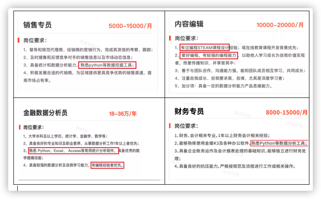 各大高薪热门的岗位JD上,Python都已经成为了重要的加分项。