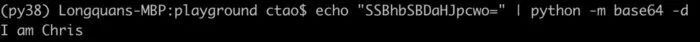 echo "SSBhbSBDaHJpcwo=" | python -m base64 -d